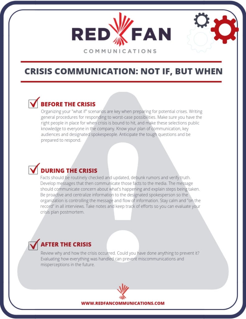 When preparing for a potential crisis, it’s imperative to put a plan in place before it’s too late. We’ve developed our checklist to help guide you through crisis when it inevitably strikes.